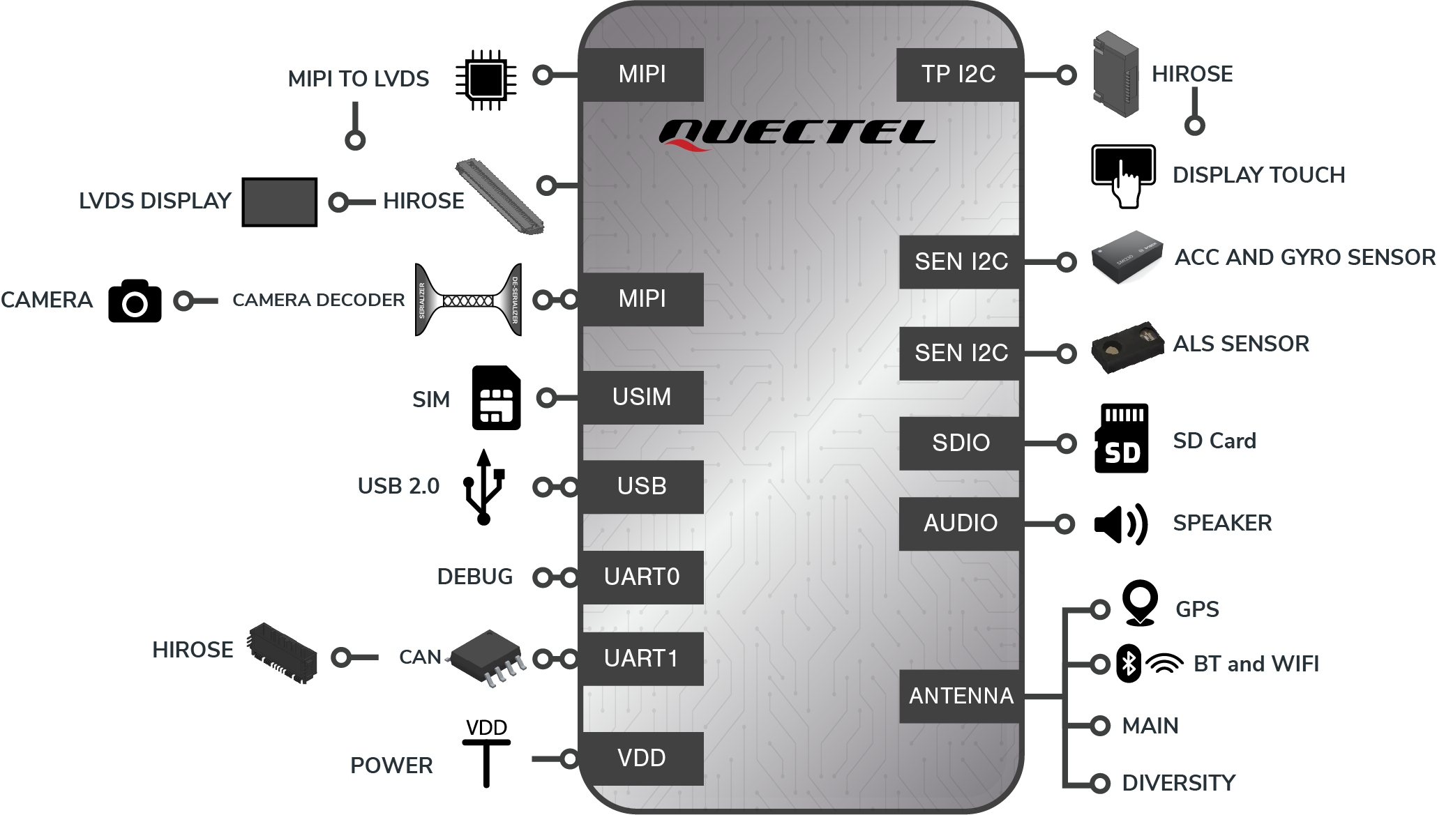 AUDIO | 3 analog inputs: MIC1, MIC2, MIC3 3 analog outputs: speaker, earpiece, headphone |