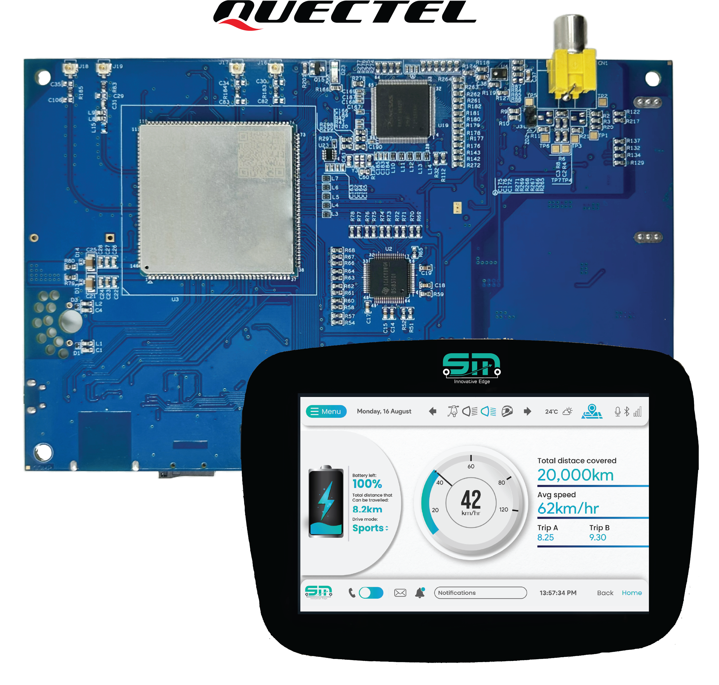 The Smart Cluster reference solution is a complete cluster system featuring a capacitive touch display for quick navigation, an odometer, light indicators, tire pressure readings, maps, and an area for displaying custom logos.