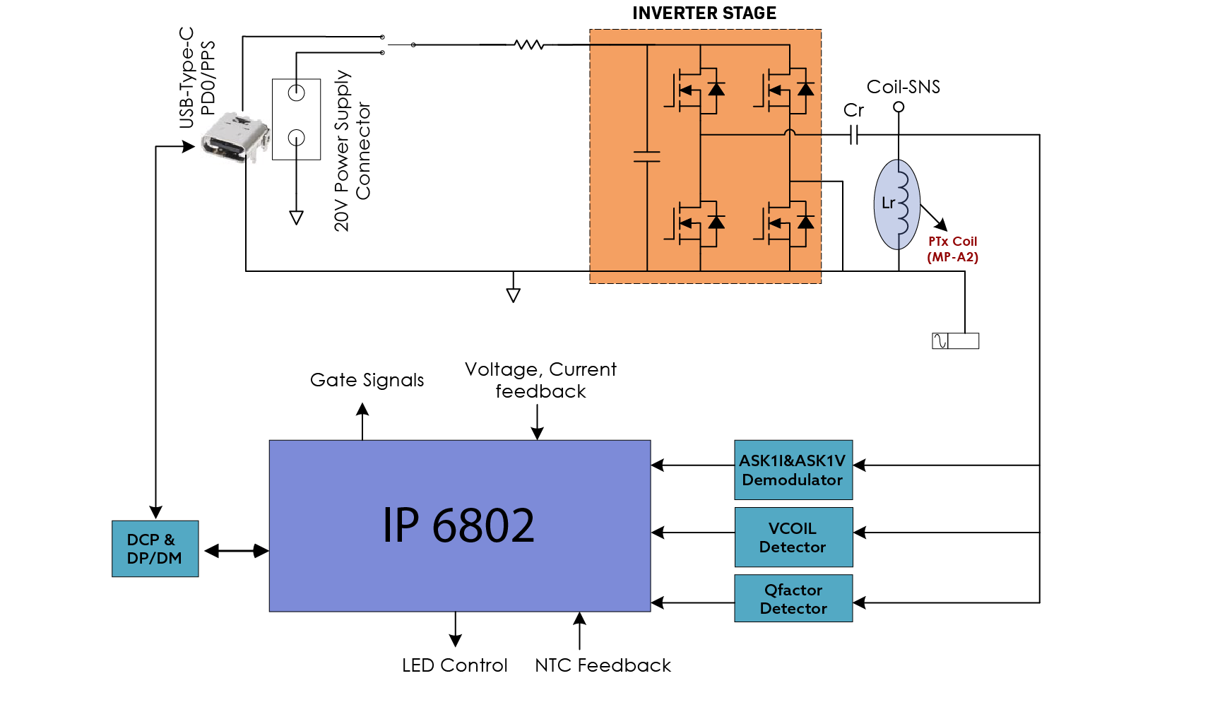It is a wireless charging transmitter control SOC chip with internal integration of 32-bit MCU, ADC, Timer, I2C, H-bridge driver, ASK demodulation & decoding and rich IO resources, which can customize various Qi protocol wireless charging solutions and pass certification tests, integrates rich IO resources and supports customization of indicator effects, and users can also customize the indicator through the PC upper computer.
