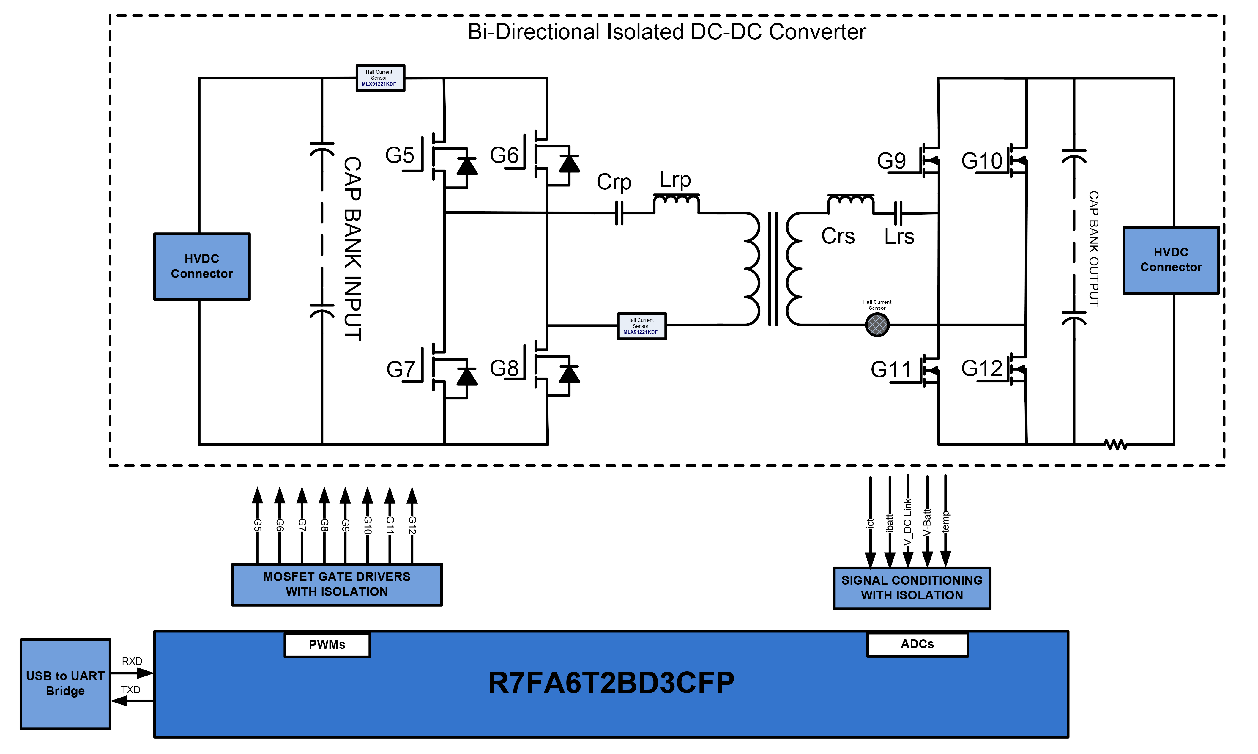 This POC is a 3.6kW bidirectional isolated DC/DC power supply based on digital control technology, employing a Dual Active Bridge (DAB) topology and advanced Triple Phase Shift (TPS) control algorithm, with soft switching across the entire voltage range and optimized modulation for minimum reverse power flow. It can achieve extremely high conversion efficiency at high switching frequencies. It features a simplified resonant network (requiring only one resonant inductor), wide voltage regulation range, seamless switching of bidirectional power operation, easy design of magnetic component for fixed frequency control and effective EMI handling. It has four working modes: Primary Side CV, Primary Side CC, Secondary Side CV, and Secondary Side CC, and can be widely used in scenarios that require unidirectional or bidirectional DC/DC power conversion, such as energy storage, on-board charger (OBC), grid-connected renewable energy generation, battery formation.