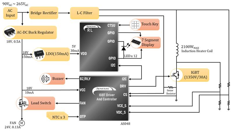 The Induction Cooktop solution is based on the IC iW248. It offers pre-programmable coil power, which allows users to customize the cooking modes effortlessly. Integrating virtually all discrete components normally used to drive and protect IGBTs, plus an optimized state machine digital core that replaces a traditional microcontroller, the iW248 significantly reduces solution size and eliminates up to 35 components.