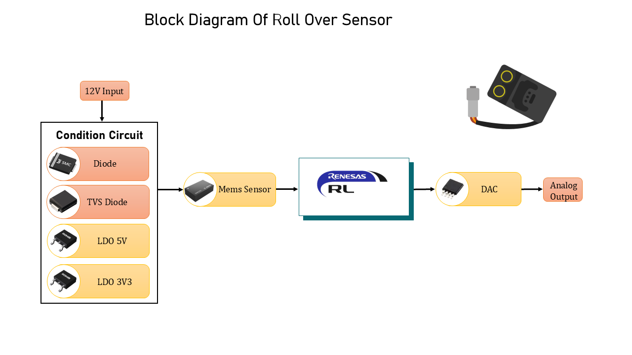 - It is built around Renesas RL78-F12 Microcontroller, and Bosch Sensor SMI230 which is Triaxial, Analog Acceleration Sensor